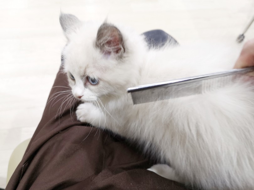 ラグドールキャットの被毛は長いため、定期的なブラッシングが必要です。特に換毛期は毛が抜けやすく、毛玉ができやすいため、1週間に数回のブラシが推奨されます。毛を整えることができれば、ラグドールの美しい外見を保ちつつ、毛玉の予防にもなります。