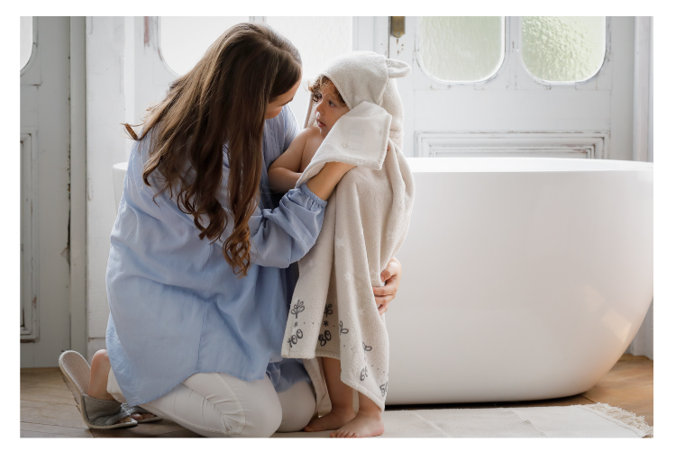 - フード付きバスタオル:頭も体も一度に包み込み、湯冷めを防止